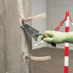 • Structural reinforcement of beams and pillars by bonding steel or composite material.