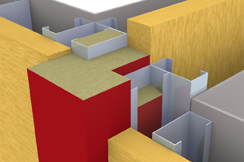 - 3-piece system fire stops at the junction between the party wall and external wall