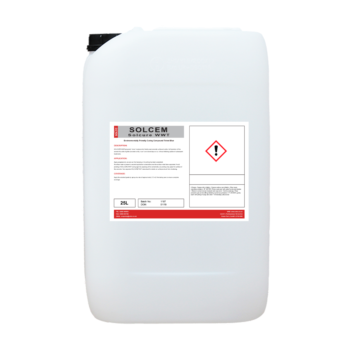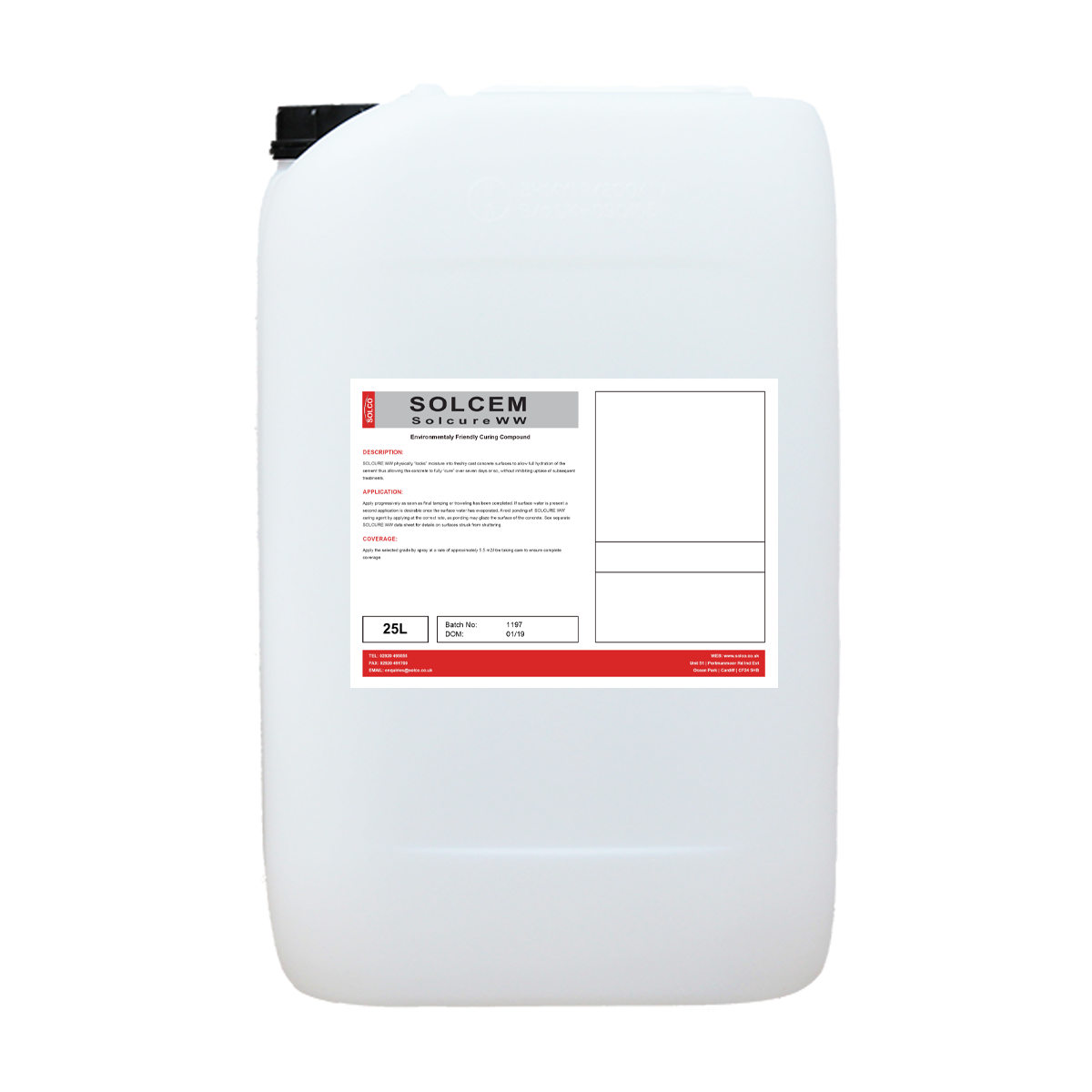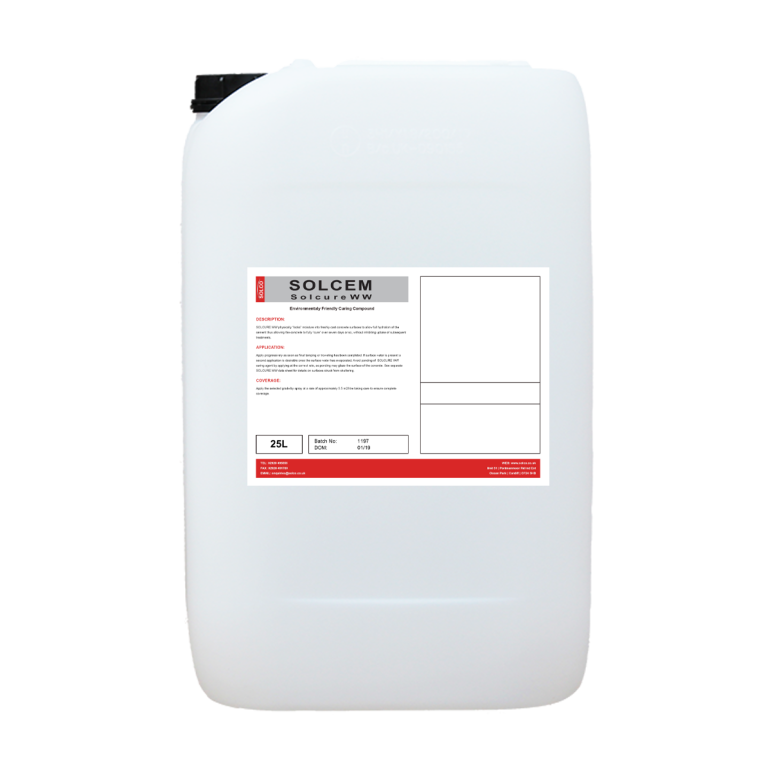 Solcure WW locks in moisture into freshly cast concrete surfaces to prevent premature drying out with water retention equivalent to75% efficiency. Solcure WW reduces the risks of surface cracking and dusting